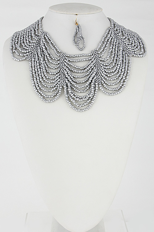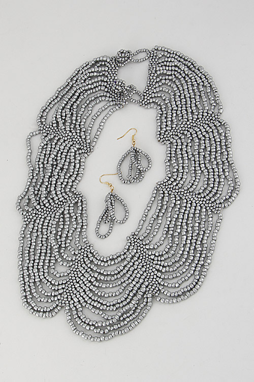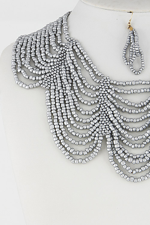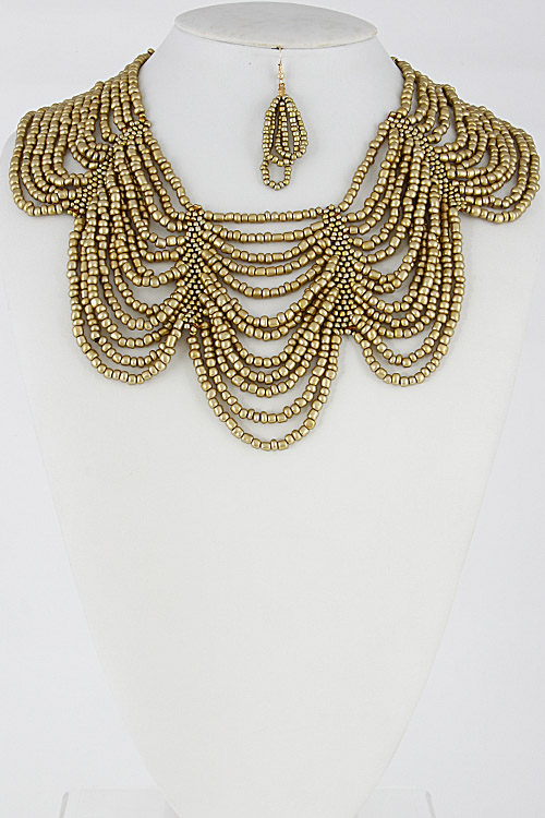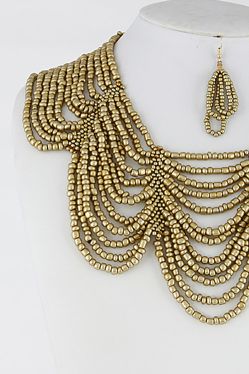 - * Tiny Beaded Multi Layer Statement Necklace Set 6DCD7 * 2.2 X 16" approx.