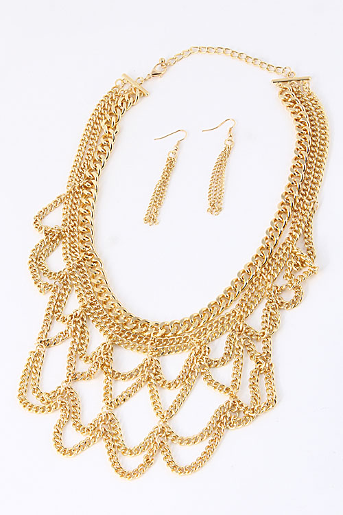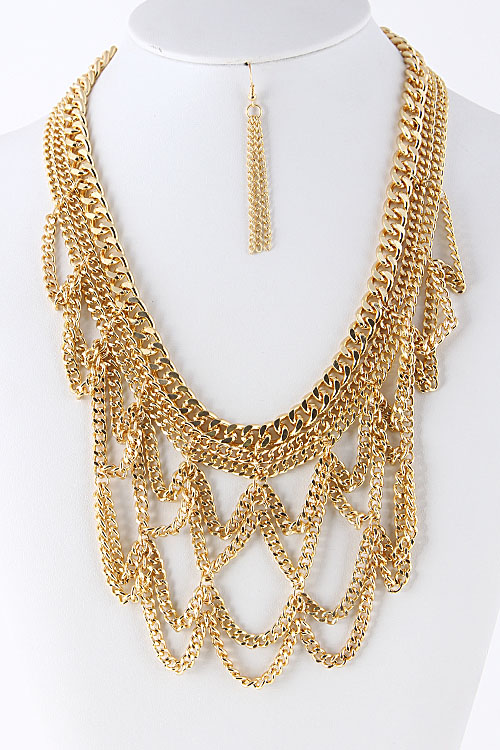 • * Curtain Chain Statement Drop Necklace 5ABD11 * 18" approx.