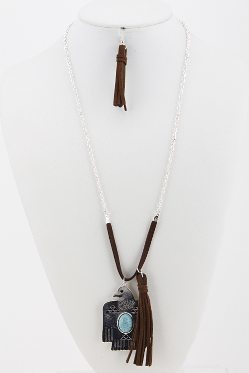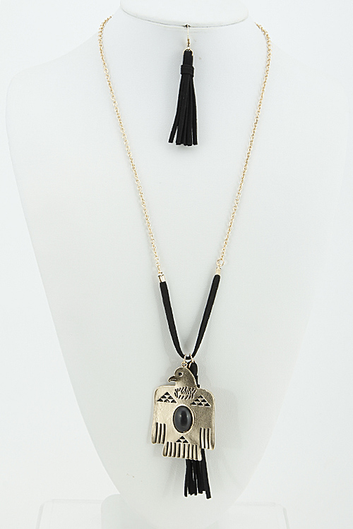 • * Aztec inspired Eagle Pendant Necklace 5JBG3 * 25X3.5" approx.