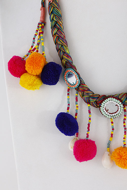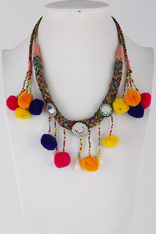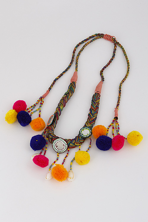 - * Mixed Pom Poms & Tassels Necklace 7FBC7 * 30" approx.