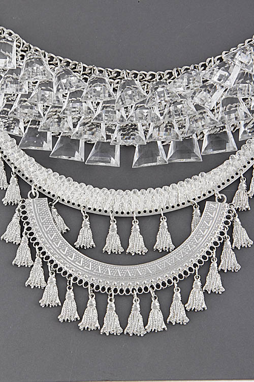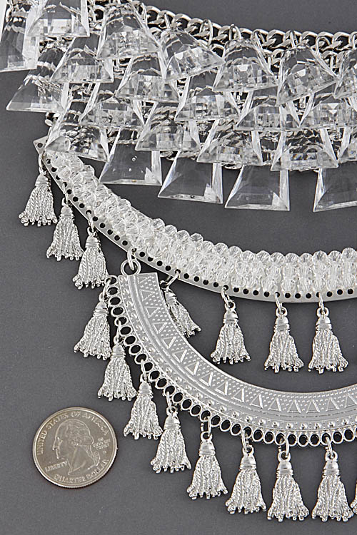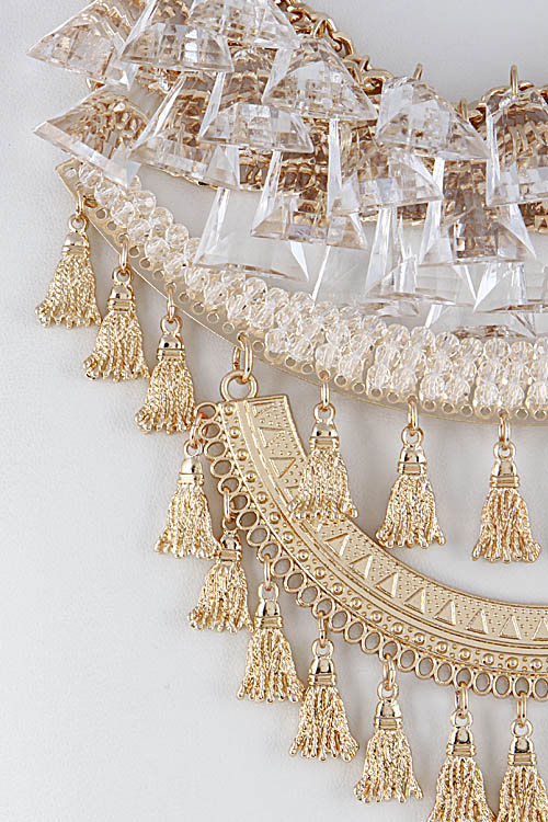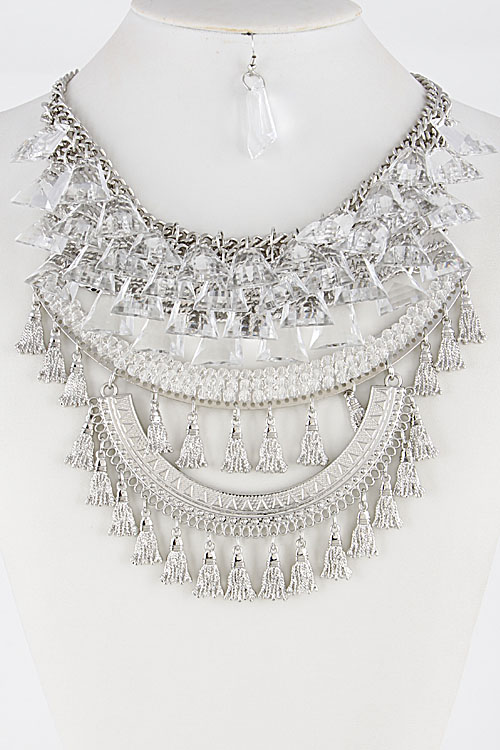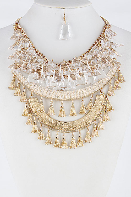 • * Formal Tassel Statement Necklace Set 6EBB7 * 16" approx.