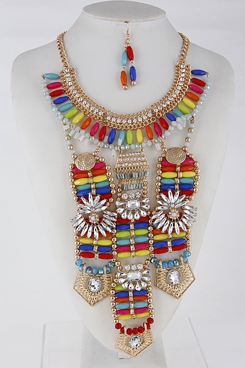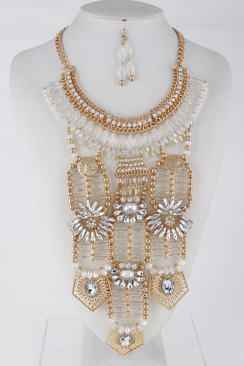 - * Eye Catching Thick Formal Drop Necklace Set 6FCB * 20" approx.