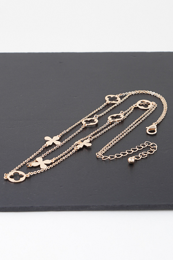 - * Introducing the "Double Open Clover Charm Necklace" from H&D Accessories, a stunning piece that beautifully showcases delicate clover charms. This necklace is not just an accessory, it's a celebration of nature's elegance, perfect for adding a touch of whimsy to any outfit.