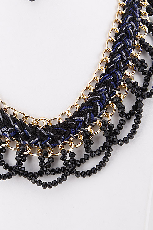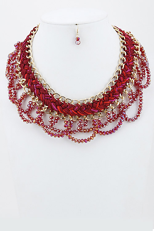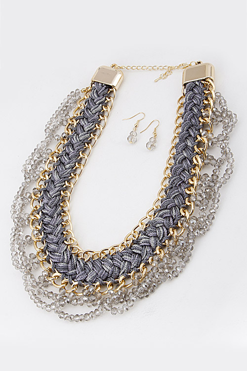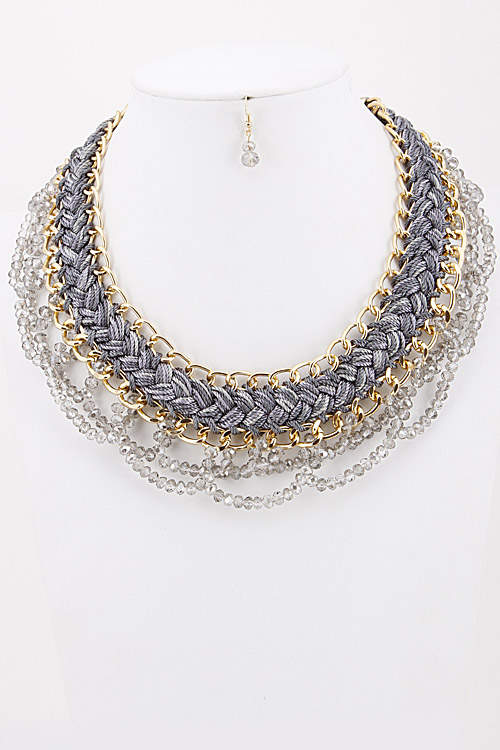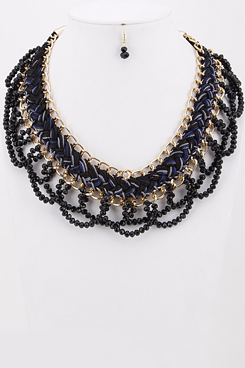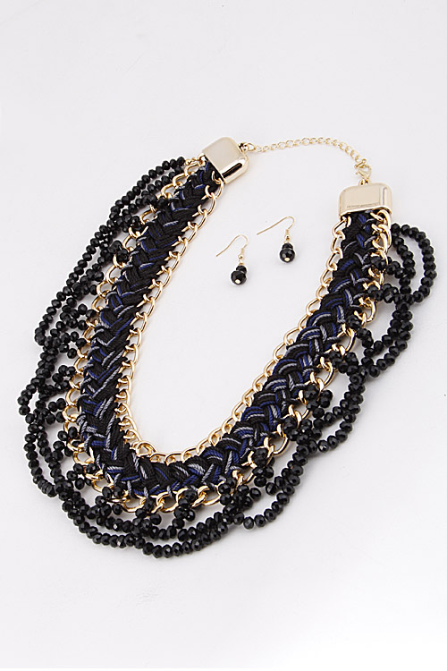 - * Braided Chain and Bead Statement Necklace Set 5JAI4 * 19" approx.