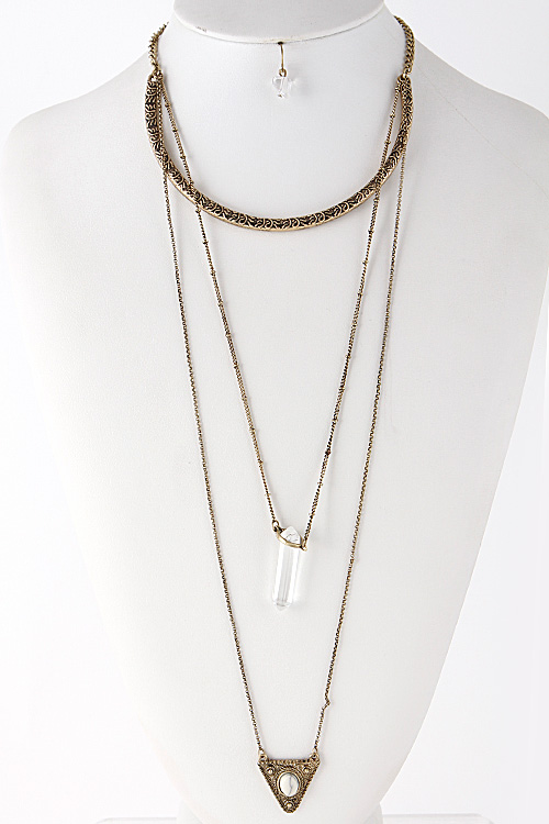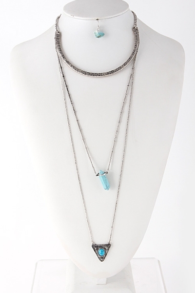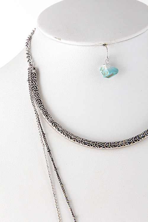 - * Half Circle Collar Stone Pendant Necklace 5EBJ10 * 28" approx.