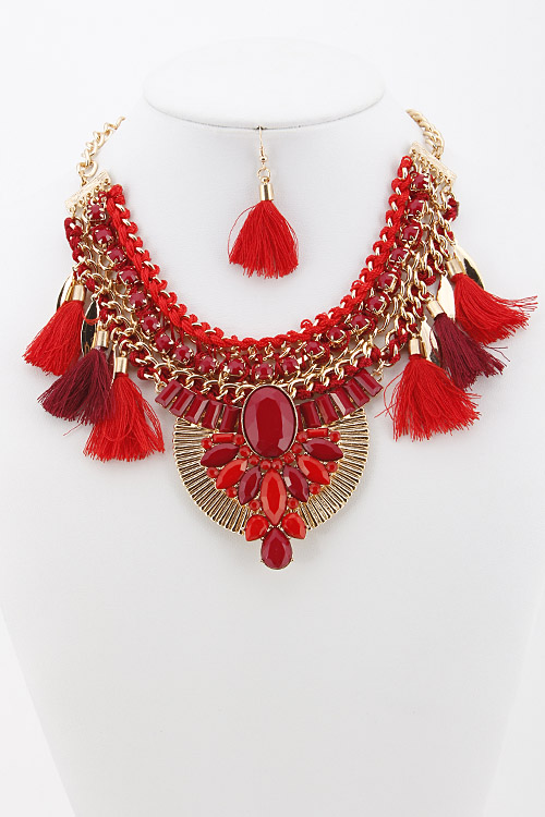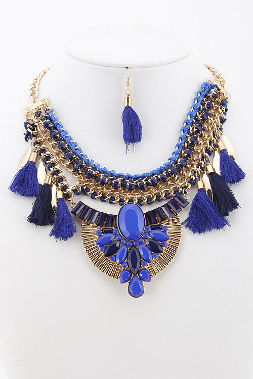 - * Southwestern inspired Statement Necklace with Tassel and Chain Detail 5JAJ5 * 20 " approx.