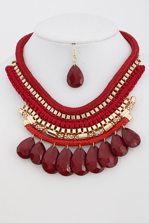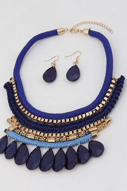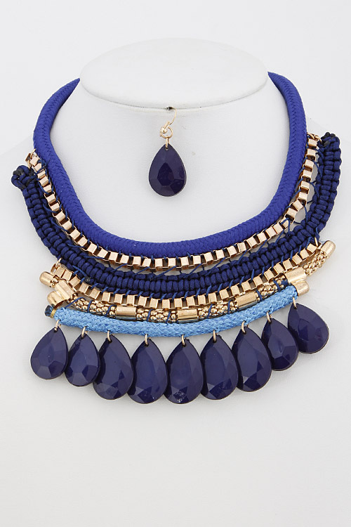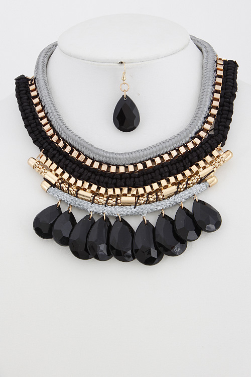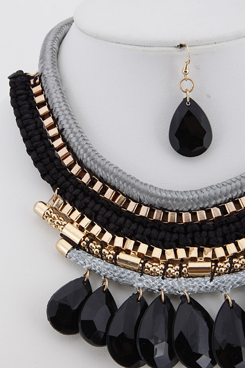 - * Mixed Ribbon and Chain Statement Necklace Set 5JBG2 * 12" approx.