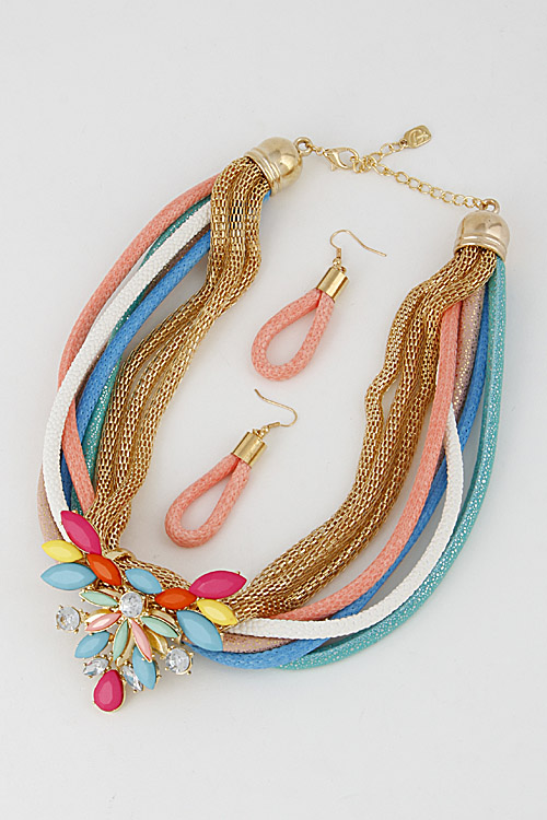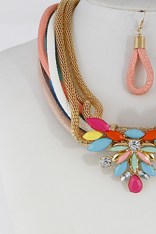 • * Colorful Multi Layered Statement Necklace Set 6DCF5 * 14" approx.