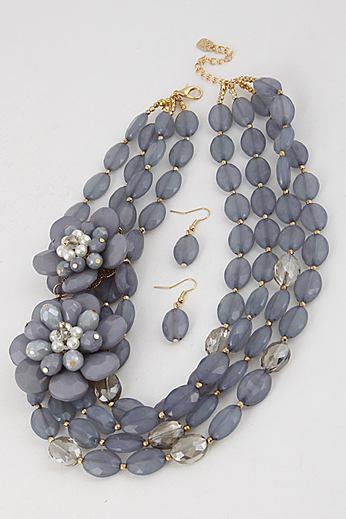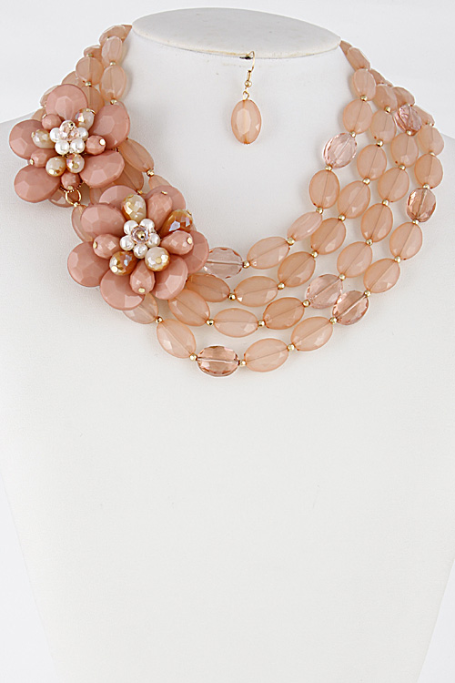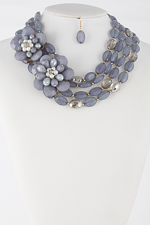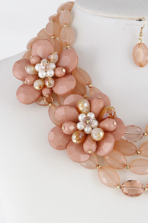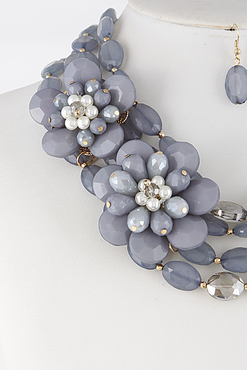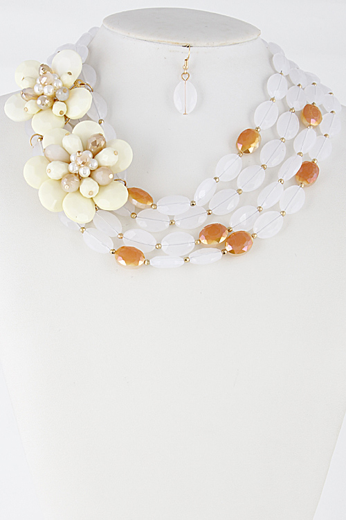 • * Thick Flower Statement Necklace Set 6FAB5 * 2 X 18" approx.