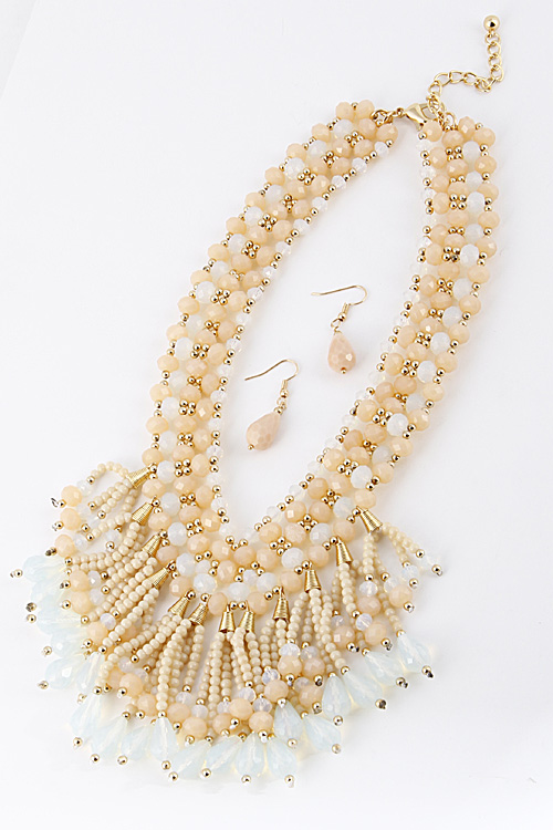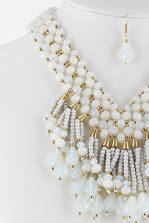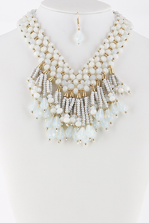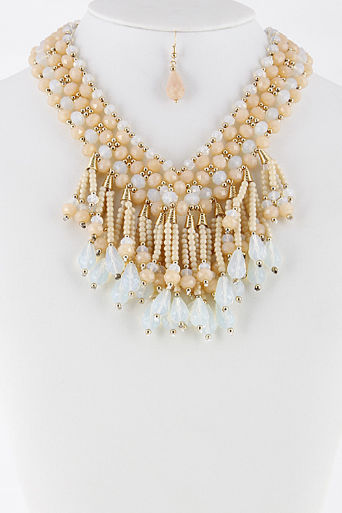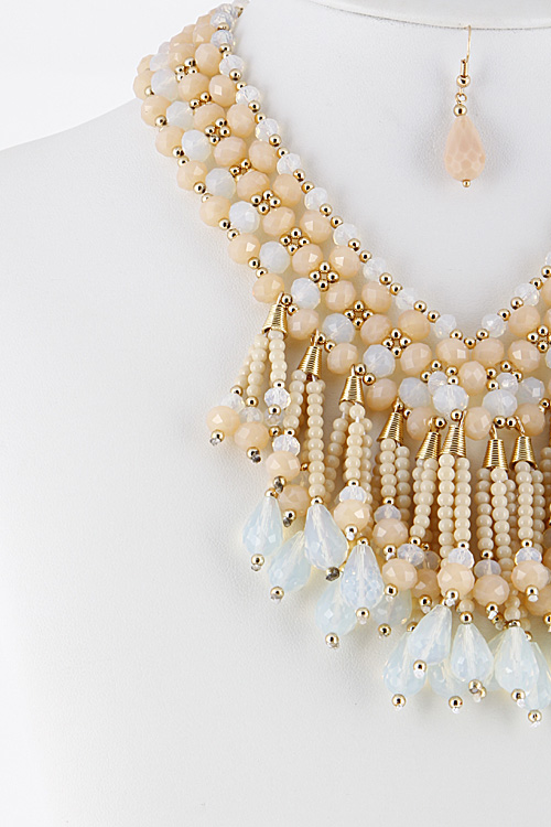 • * Colorful Statement Necklace With Fringes And Beads Set 6CAE5 * 16 X 3" approx.
