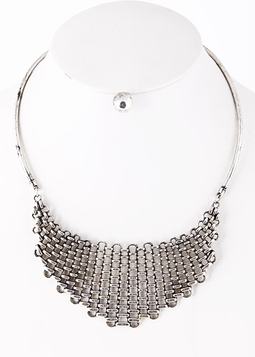 - * Ring Layered Curved Bar Plate Necklace 5ECC3 * 10 x 2" approx.