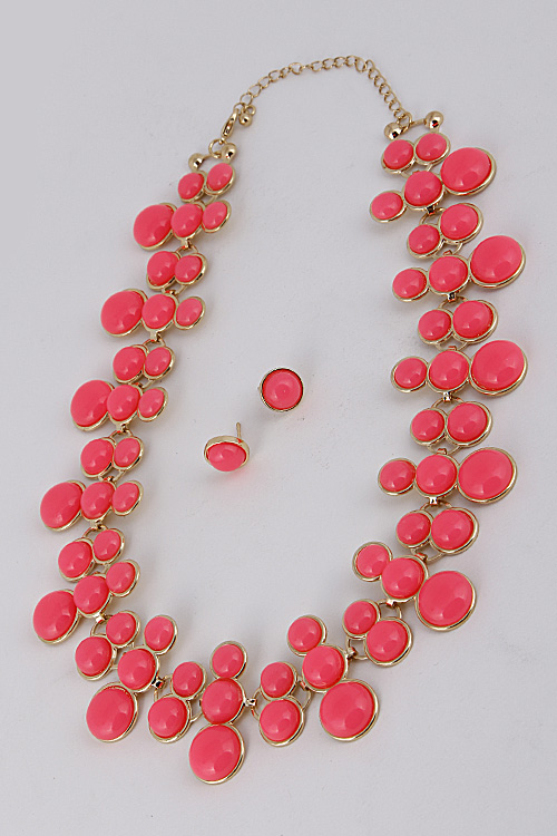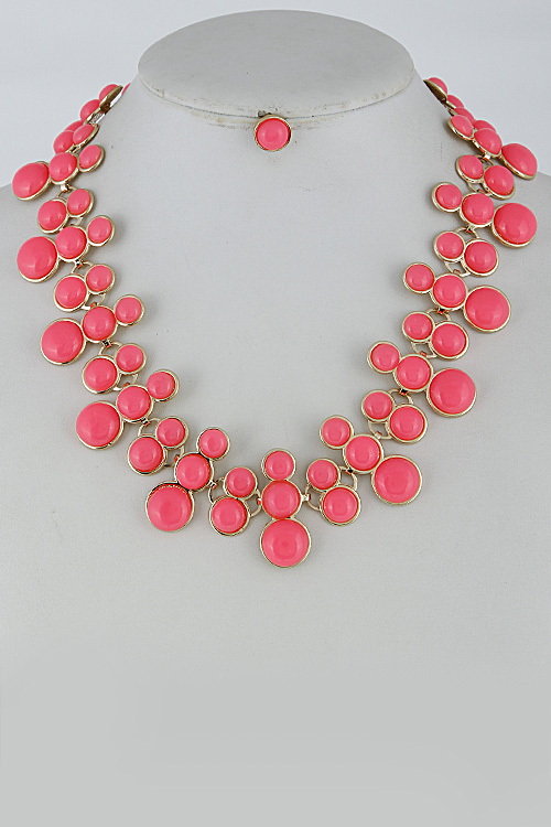 - *Flashy Circle Statement Necklace Set 6BAK8 *16" approx.