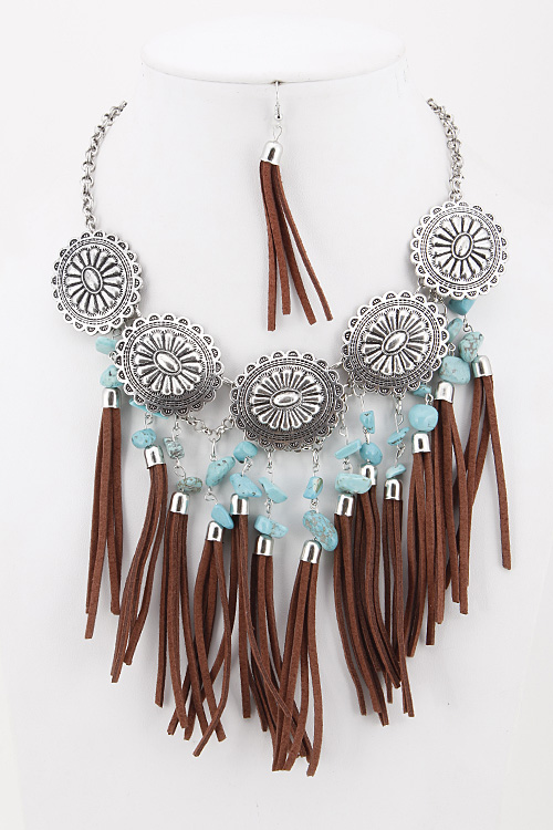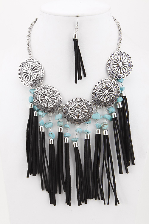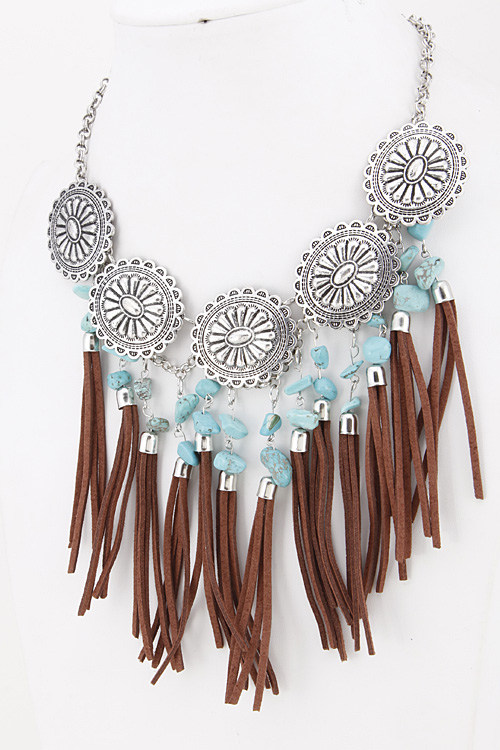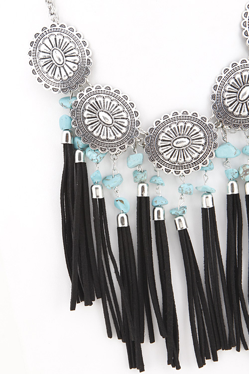 - * Southwestern Tassel and Bead Necklace 5JAI11 * 18X5 " approx.