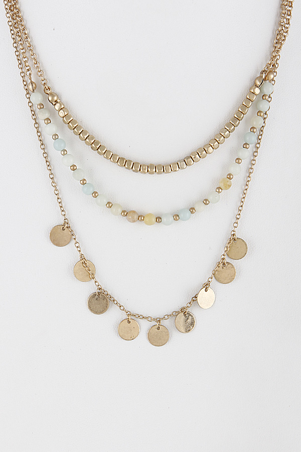 - * Metallic Semi Circle And Stones Layered Necklace 8JAD10