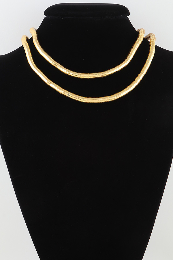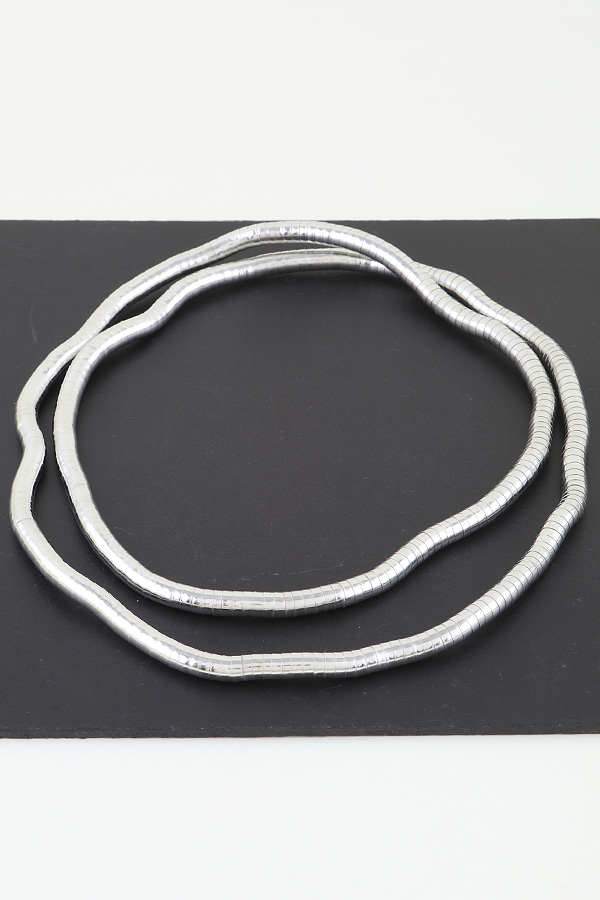 • * The Shiny Double Scaled Necklace from H&D Accessories is a statement piece. It consists of two intertwined, scaled - patterned bands that create a sleek and sophisticated look, with a polished finish that catches the light, exuding luxury and modern elegance.