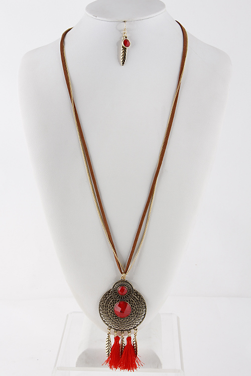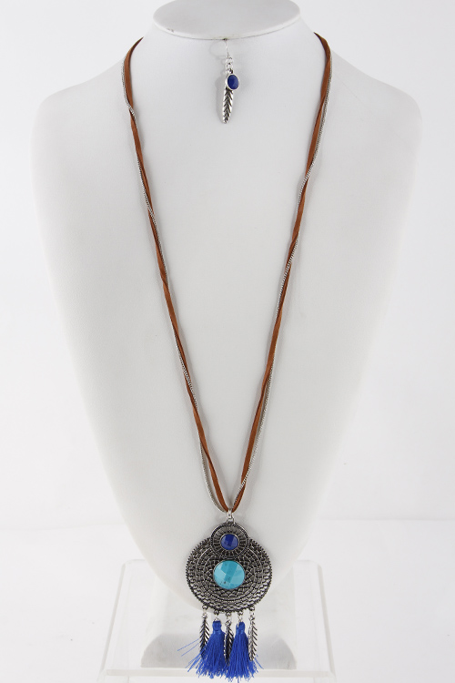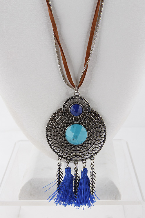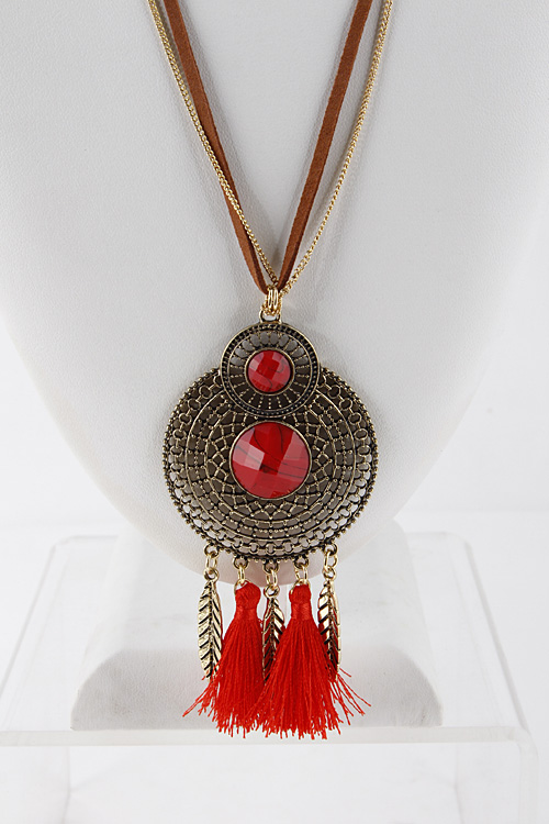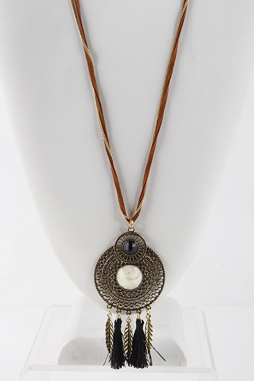 • * Antique Yarn Chain Tassel Dream Catcher Necklace 5ECJ11 * 30 x 4" approx.