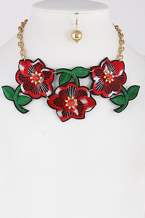 • * Charming Red Roses Choker Necklace 7FAF9 * 14" approx.
