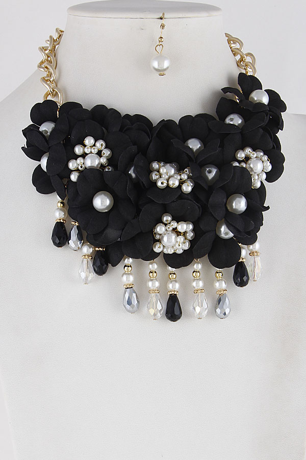 - * Elegant Flower & Pearl Beaded Necklace 8IBC6