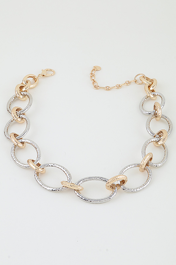 - * Indented Hoop Chain Statement Necklace