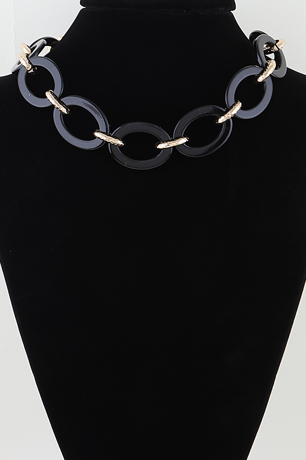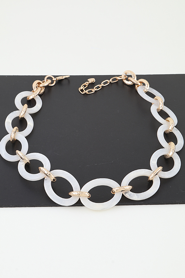 - * This is the Stone Link Chain Statement Necklace from H&D Accessories. Crafted with interlinked oval elements connected by textured metal links, it features a secure clasp with an adjustable extension chain for a customized fit. Designed as a bold, eye-catching piece, it elevates everyday outfits or adds a striking touch to evening ensembles—ideal for those seeking a standout accessory with structured, modern appeal.