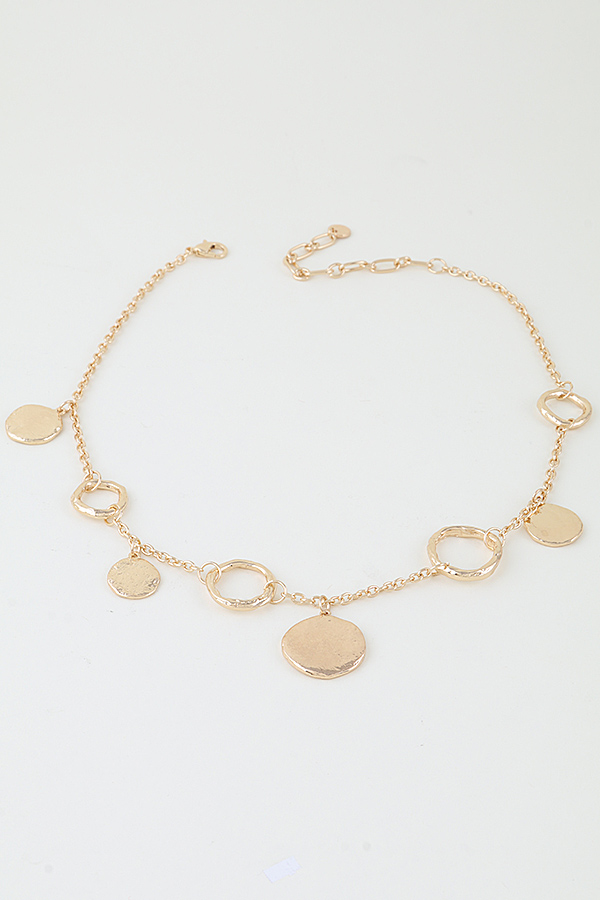 - * Abstract Hammered Disc Chain Necklace