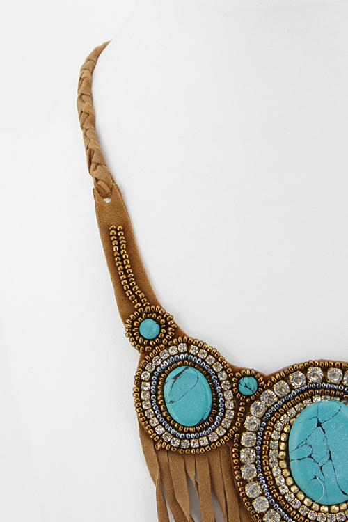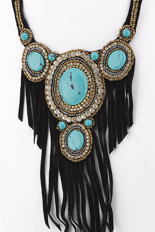 - * Southwestern Statement Necklace with fringe Tassel Detail 5JAJ1 * 16 X 8 " approx.
