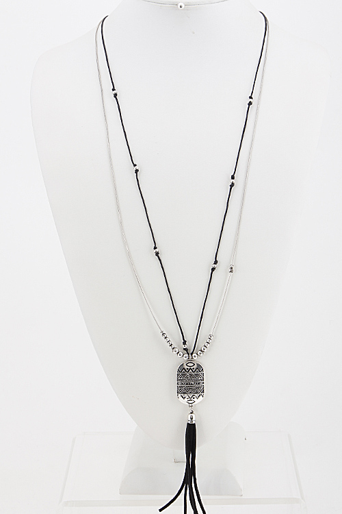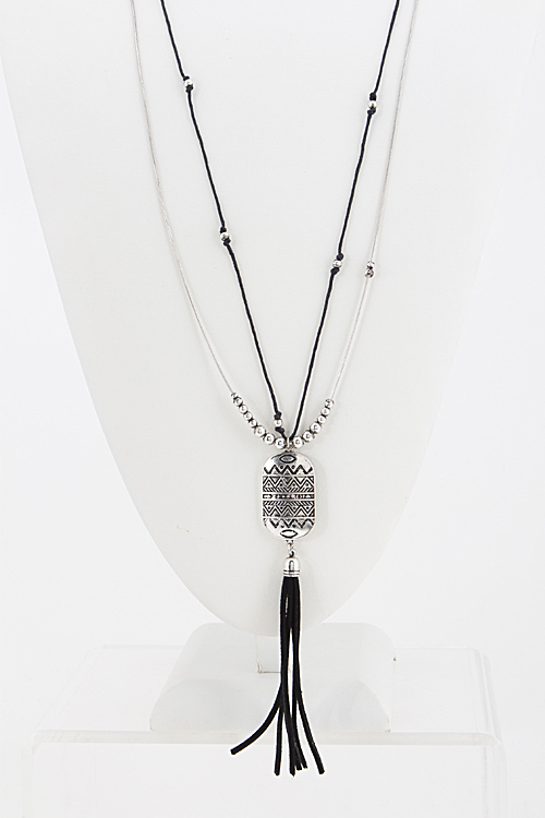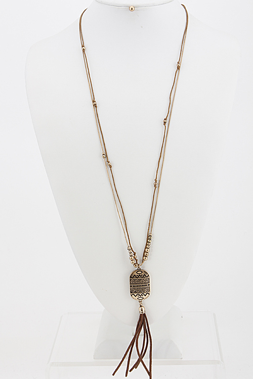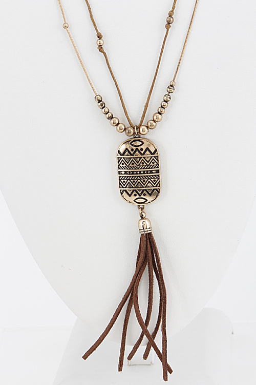 • * Tribal Charm Pendant Necklace with Tassel fringe Detail 5JCB9 * 15X5" approx.