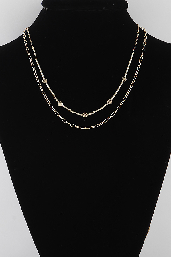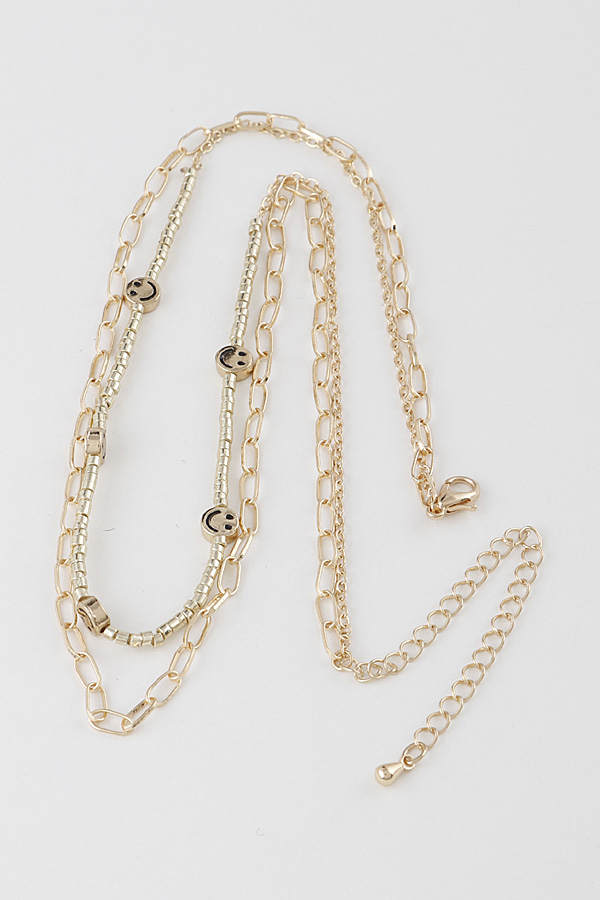 - * Double Layered Smile Face Charm Necklace