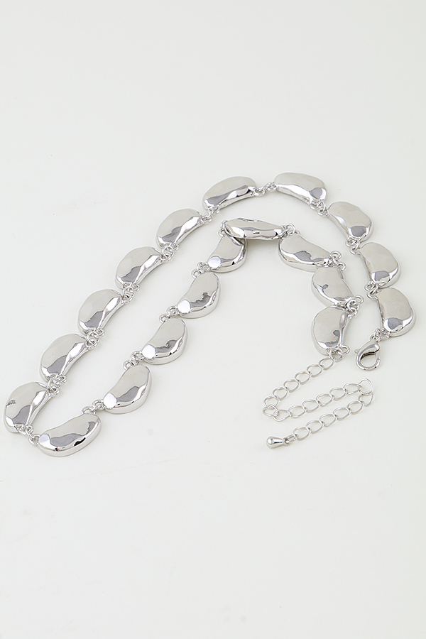 - * The Hammered Plate Chain Necklace From H&D Accessories features irregular, hammered plates linked together. Its design showcases textured, organic-shaped plates, creating a bold yet refined look. Meticulously crafted, it merges artisanal hammered detailing with modern chain styling, making it a distinctive accessory that adds a touch of avant-garde sophistication to your style.