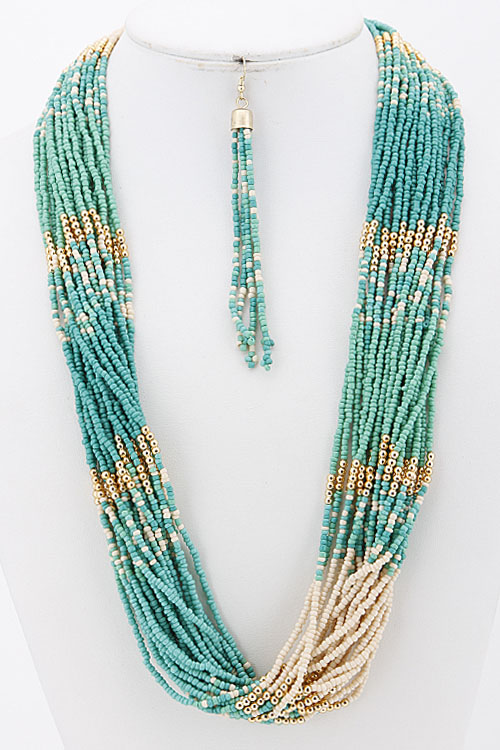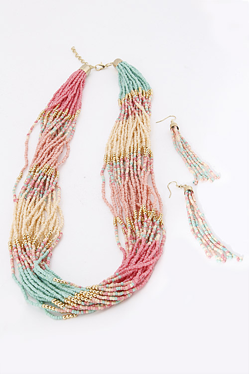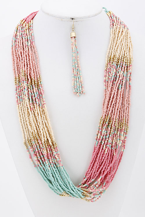 • * Color Mixed Bead Necklace Set 6ACH7 * 28" approx.