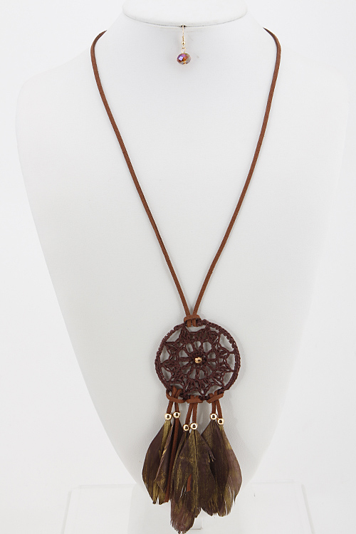 • * Dream Catcher with Feather Detail Set 5JCB8 * 34", 11" approx.