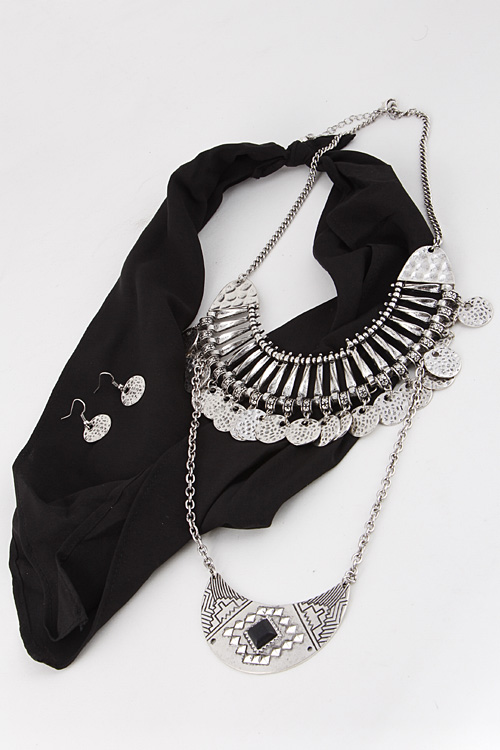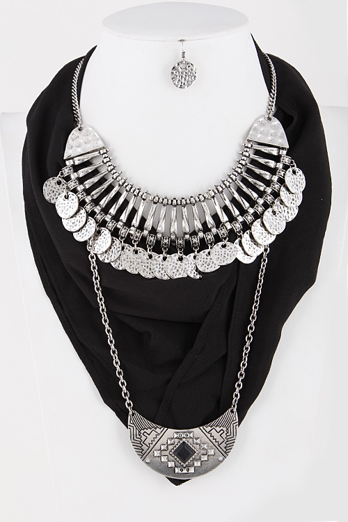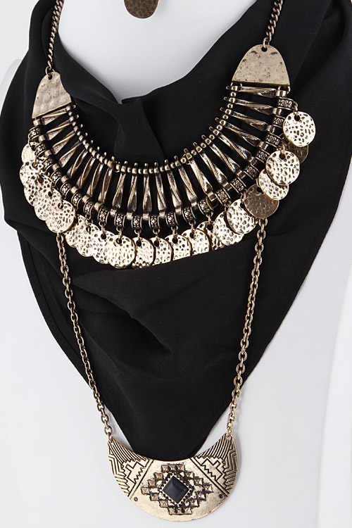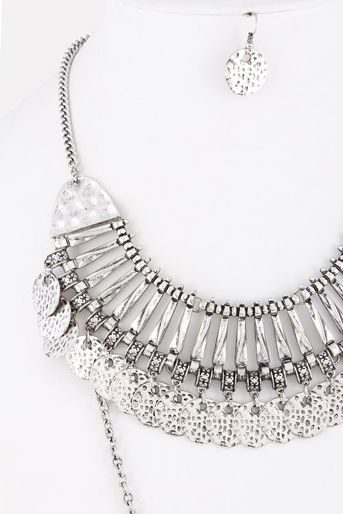 - * Tribal inspired Statement Necklace Set with Crescent Hammered Charm Detail 5JAD2 * 16" approx.