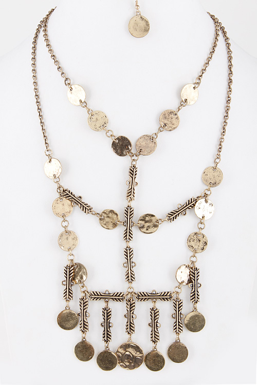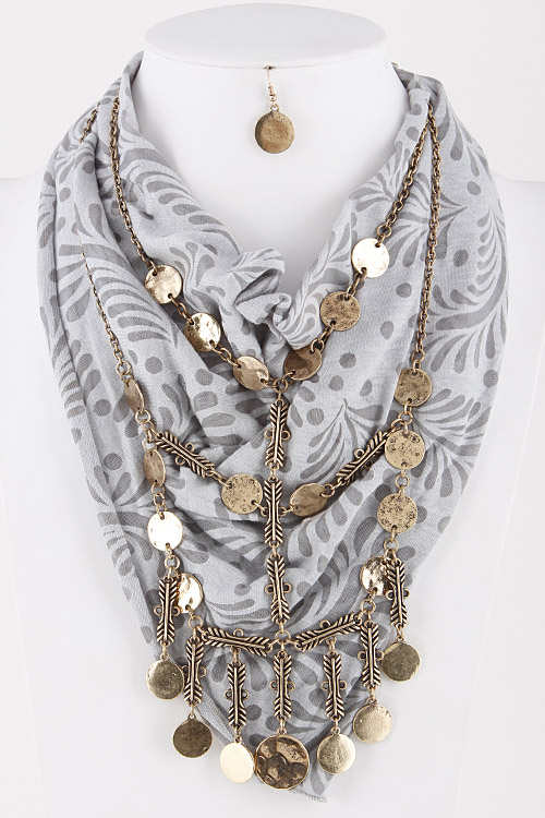 • * Coin and Chained Layered Necklace with Scarf Detail Necklace 5JAD3 * 14" approx.