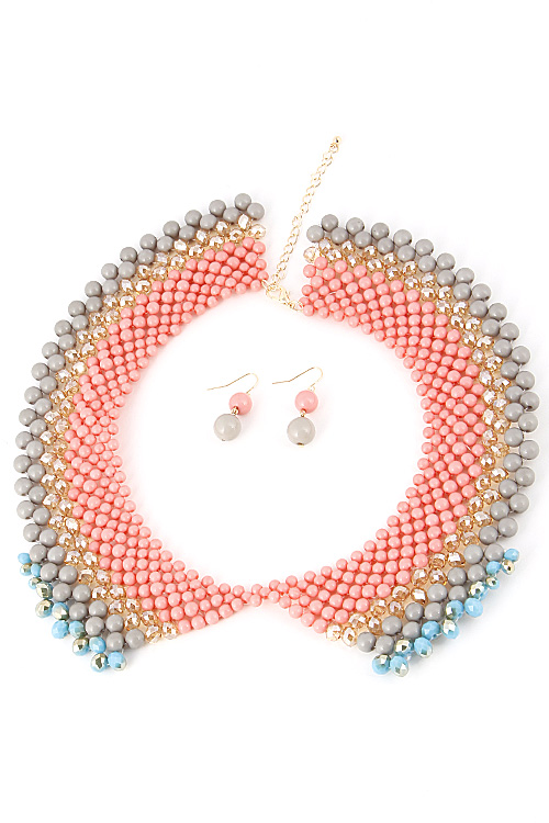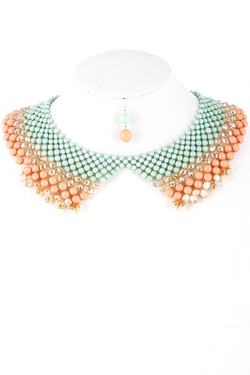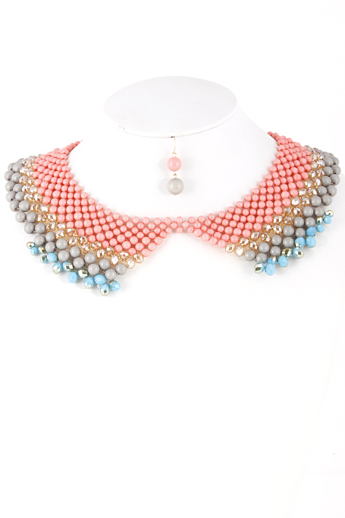 - * Perfect Collar Multicolor Beaded Necklace 5ACC * 10 x 2" approx.