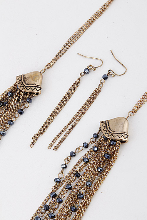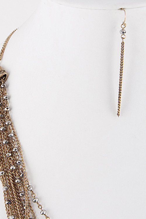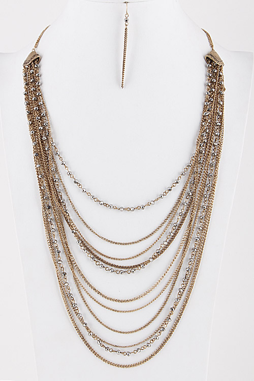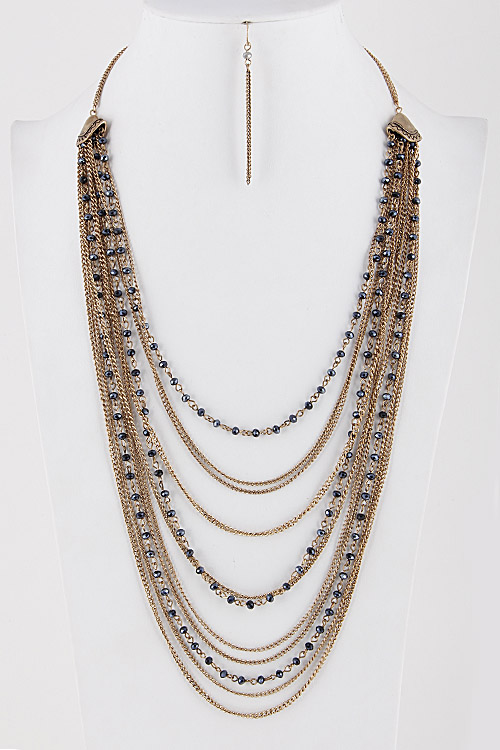 • *.Long Layered Chain and Bead Necklace Set 5ICJ8 * 16.5" approx.