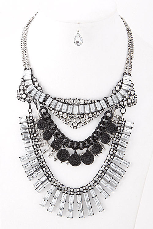 • * Black Rhinestone Necklace 5HCA2 * 25 X 7" approx.