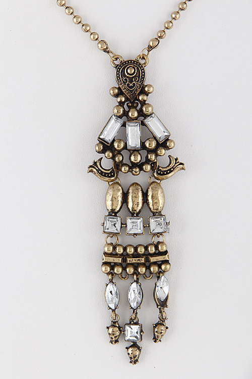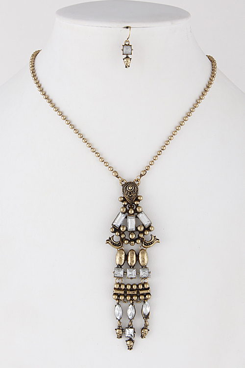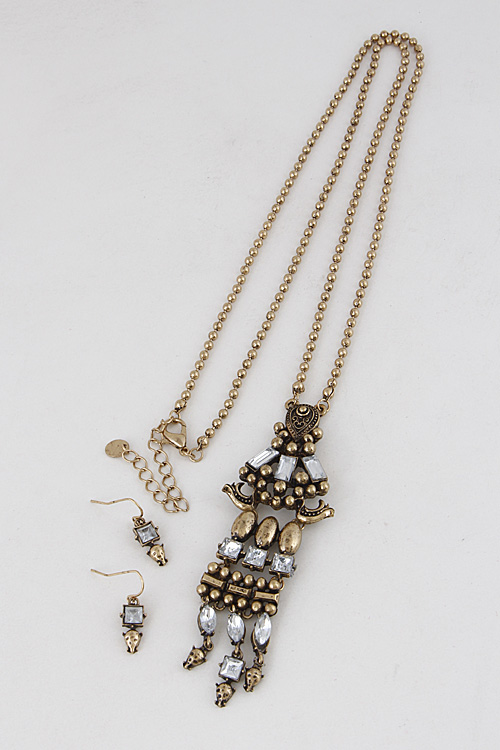 - * Antique Inspired Rhinestone Drop Necklace Set 6IBG3 * 32" approx.