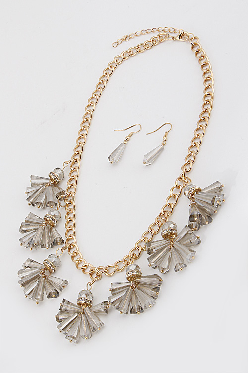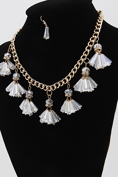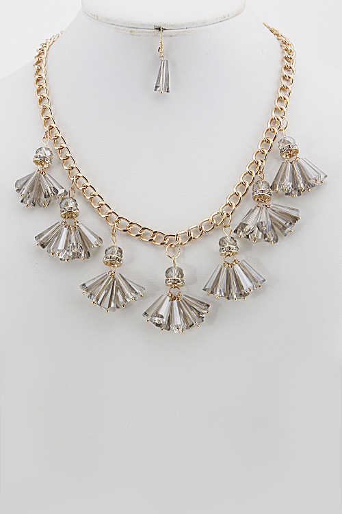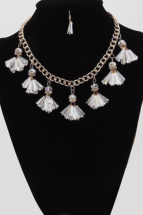 • * Tassel Design with Faux Crystal Details Necklace 5LCC7 * 16" approx.