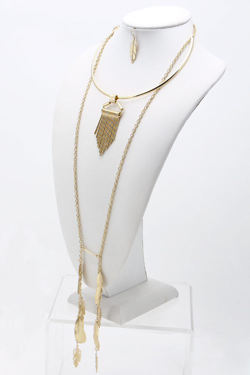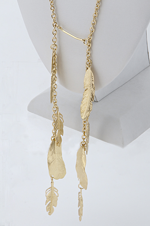 • * Bar Drop Pendant Collar Feather Dangle Necklace 5FCJ2 * 28 x 7" approx.