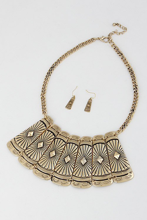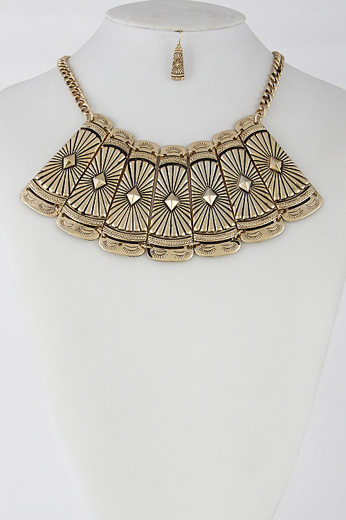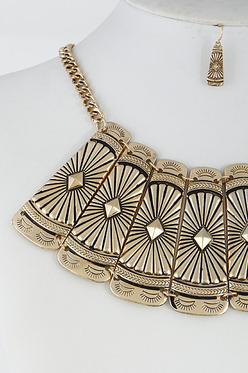 - * Unique Antique Egypt Inspired Statement Necklace Set 6DCF7 * 16" approx.