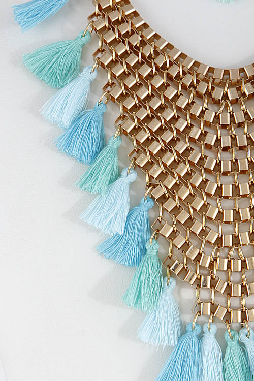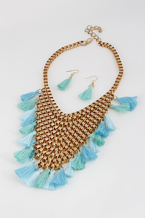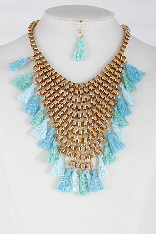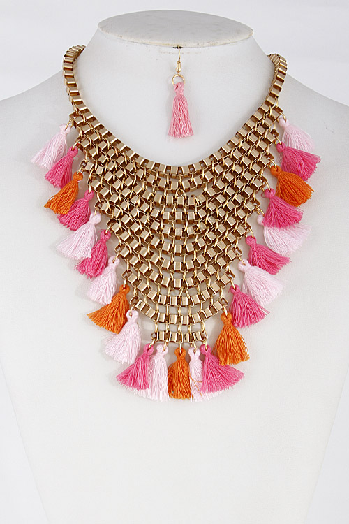 - * Thick V Shape Statement Necklace With Tassels Set 6FCH7 * 16" approx.