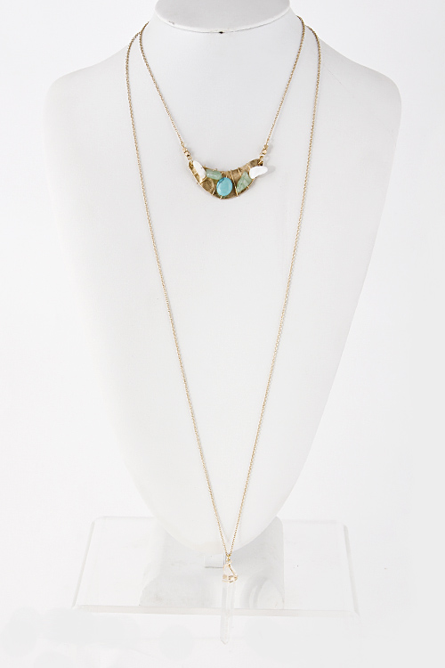 • * Multiple Stone Attache Collar Pendant Necklace 5CDB1 * 36" approx.