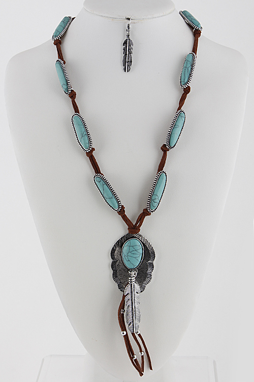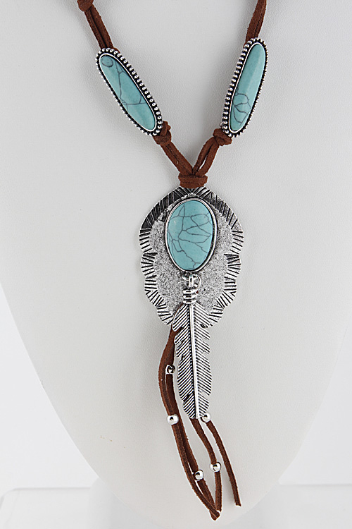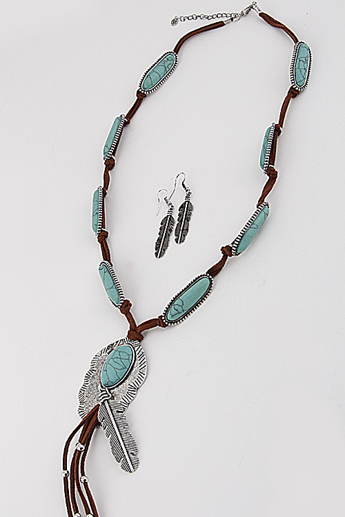 - * Western Feather Pendant Necklace Set 5LBA4 * 22 X 6" approx.