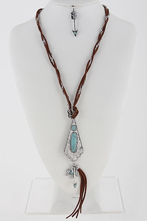 • * Western Eagle and Arrow Charm Necklace Set 5LBA4 * 22 x 7" approx.