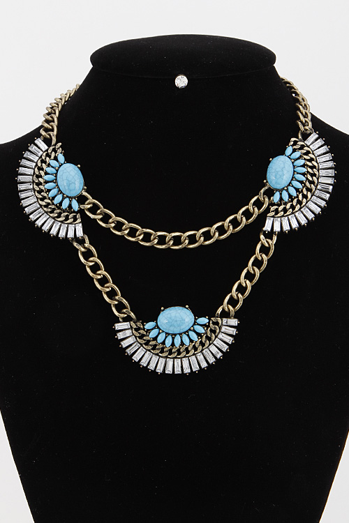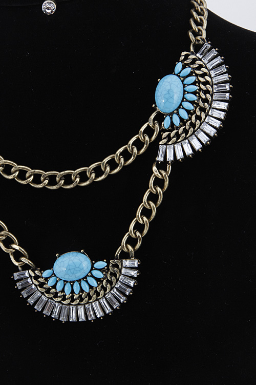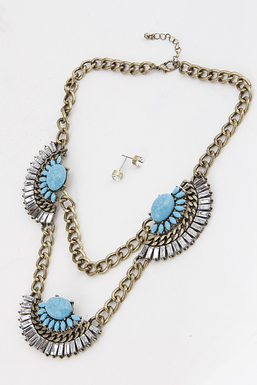 • * Tribal Crescent Faux Stone Statement Necklace Set 5JCB3 * 16" approx.