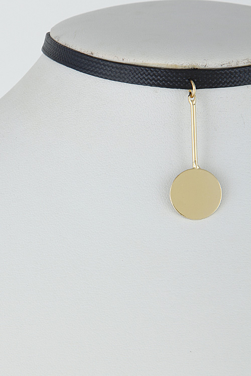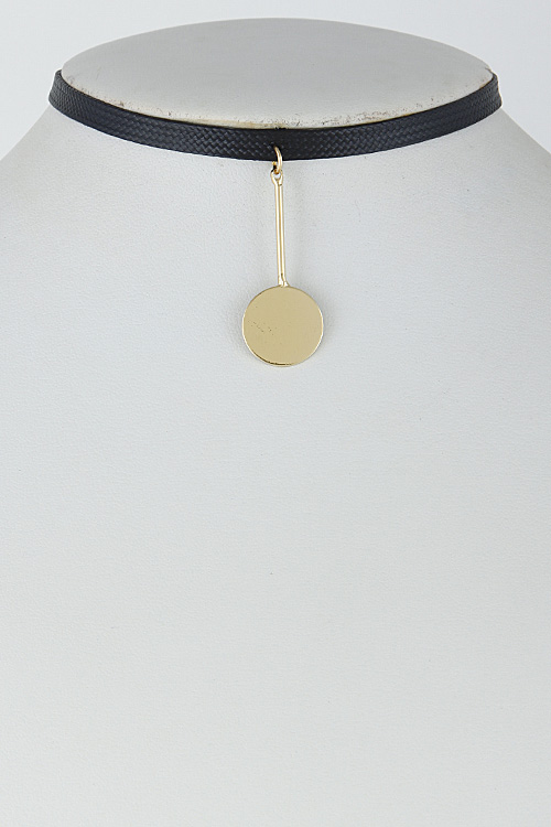 • * Thin Choker With Circle Bar Pendant 6GCF7 * 0.2 x 14" approx.