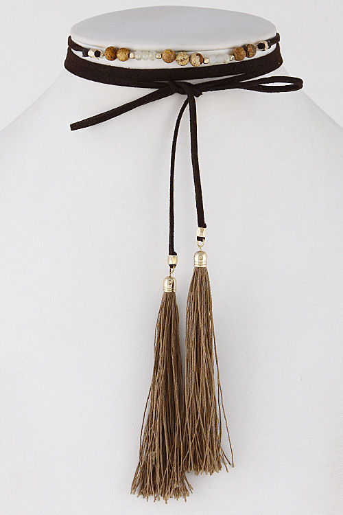 • * Glamorous Choker Necklace With Ribbon and Tassel Detail 7ABD2 * 72" approx.