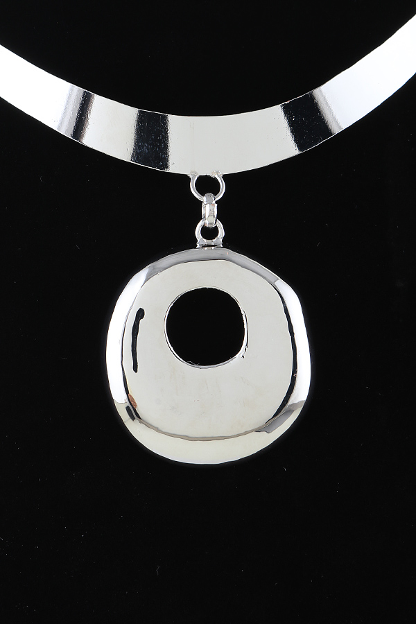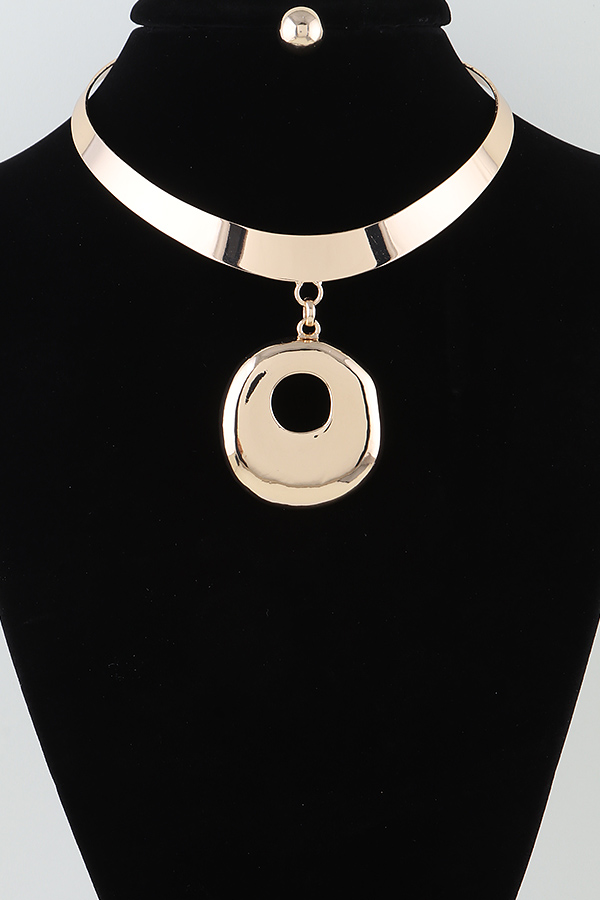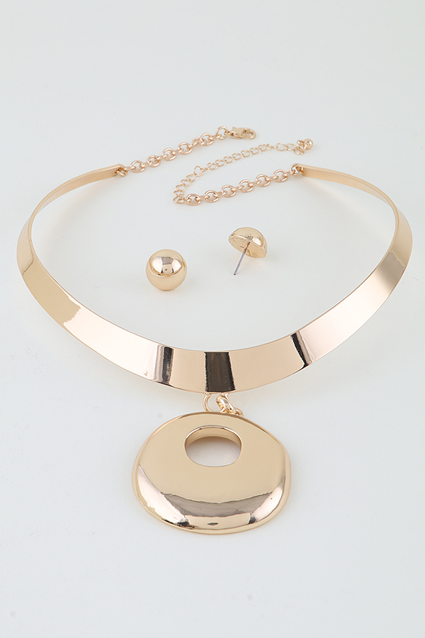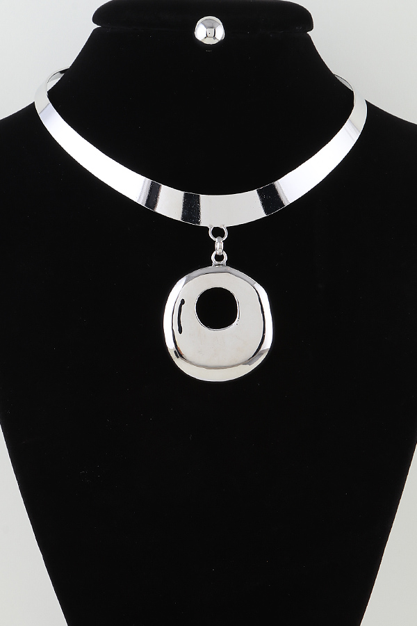 - * This set includes a Shiny Modern Disc Necklace and a pair of matching earrings, all from H&D Accessories. The necklace has a sleek, wide band that sits comfortably around the neck, with an eye - catching disc pendant featuring a central cut - out. The earrings are designed in a complementary style, creating a cohesive and stylish look. It's perfect for adding a touch of elegance to any ensemble.