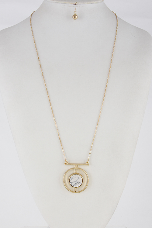 - * Long Necklace With Circle Stone Emblem 6FCA10 * 26" approx.