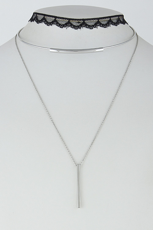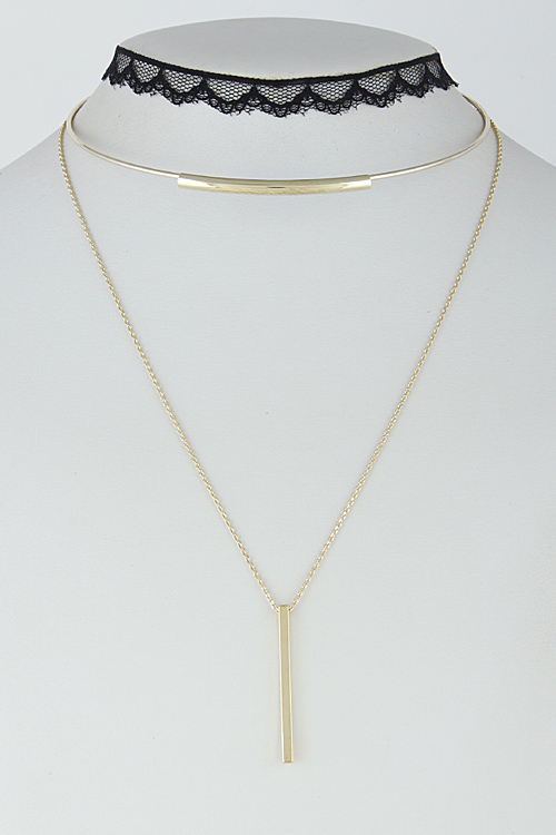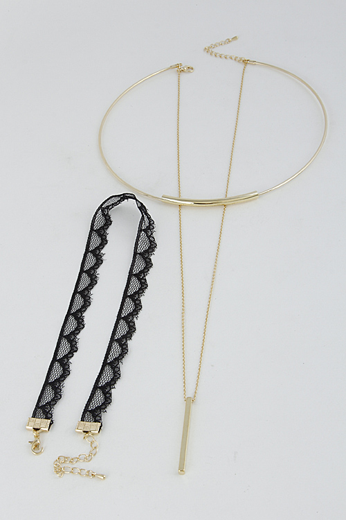 • * Multi Layer Lacy Solid Choker With Bar Set 6HAC4 * 0.5 x 12" approx. * 10" approx.